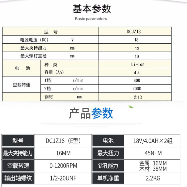東成充電式無刷電鉆DCJZ16(E型)、DCJZ13(E型)參數展示