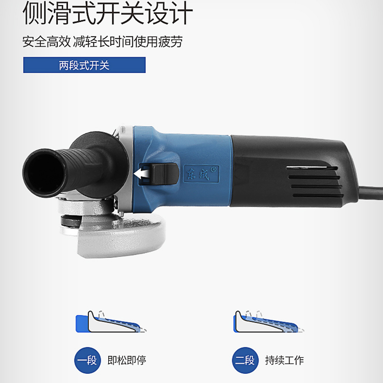 角磨機側滑式開關設計,安全高效,減輕長時間使用疲勞