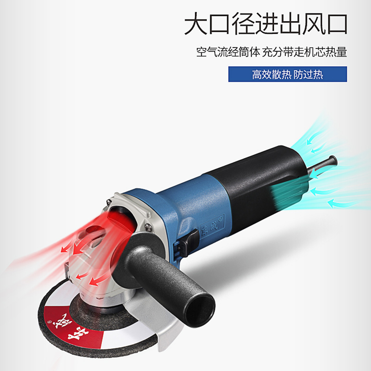角磨機大口徑進出風口,空氣流經筒體,充分帶走機芯熱量