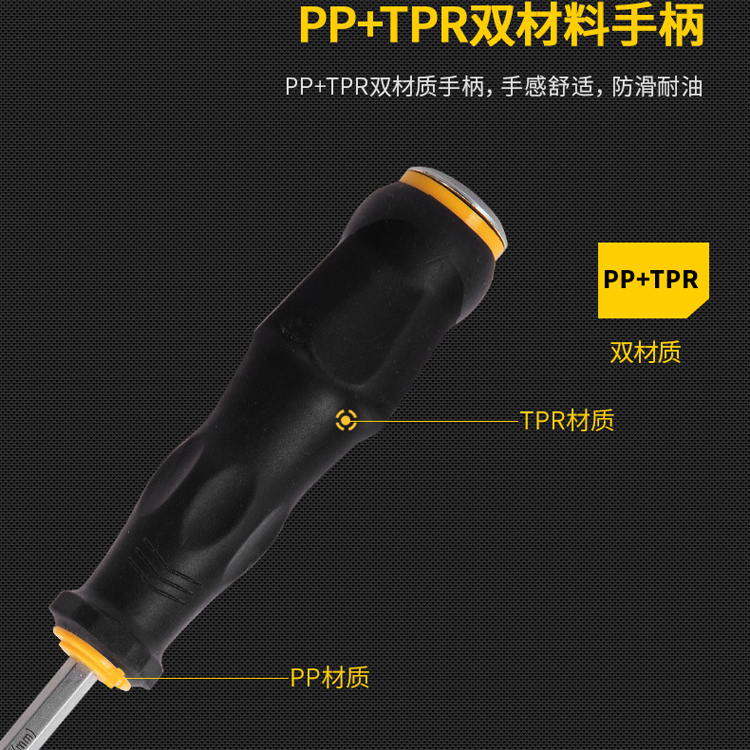 螺絲批批桿鉻釩鋼材質(zhì)、PP+TPR雙材料手柄、柄部敲擊設(shè)計(jì)