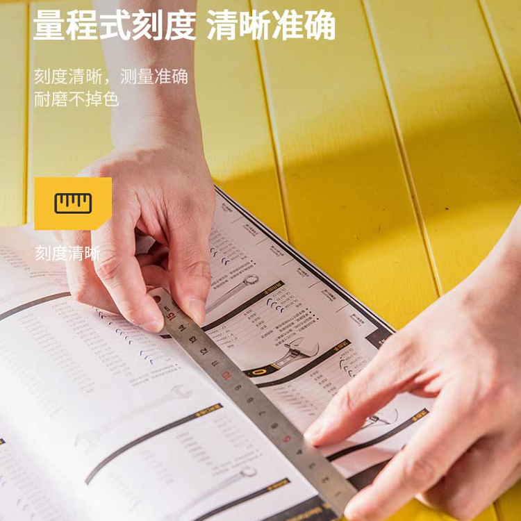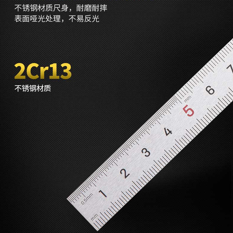 直尺不銹鋼材質尺身,耐磨耐摔,表面啞光處理,不易反光