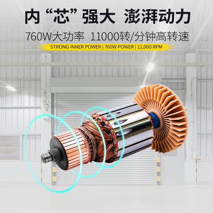 磨光機內芯強大 澎湃動力 760W大功率 純銅材質電機