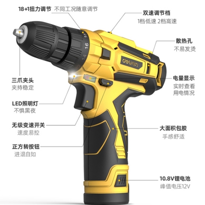 得力(deli) 10.8V無線單鋰電電鉆鉆孔組裝一機兩用,家裝維修更方便。