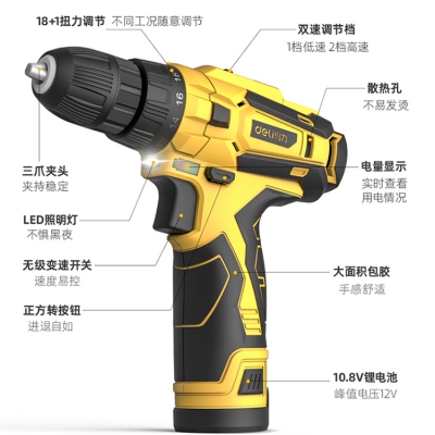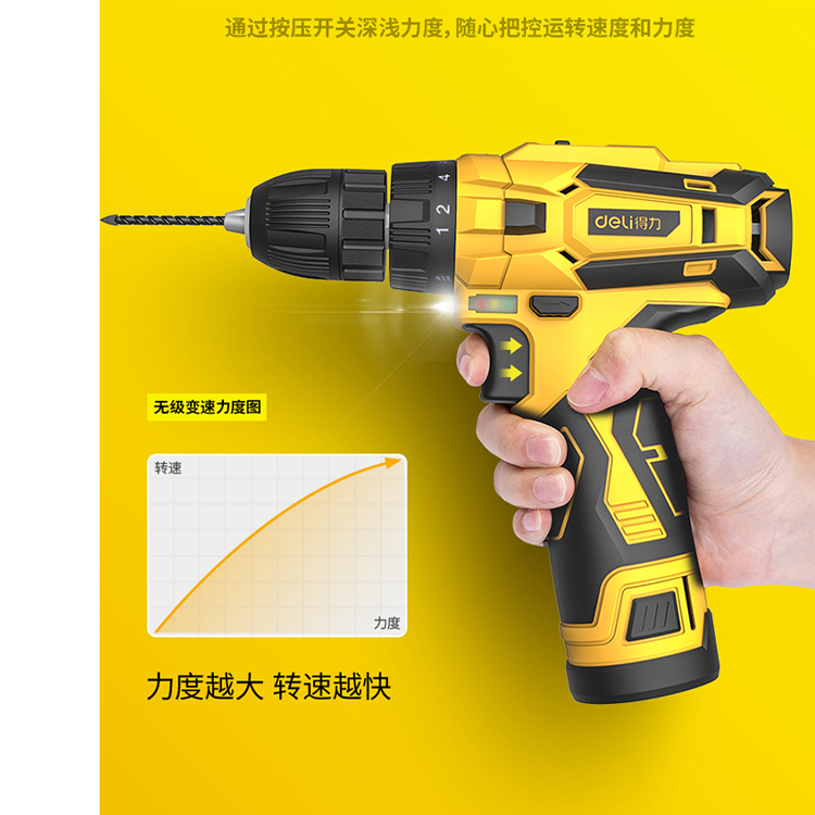 得力(deli) 10.8V無線雙鋰電電鉆無級變速,隨心把握速度。