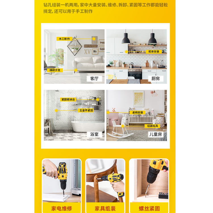 得力(deli) 10.8V無線雙鋰電電鉆鉆孔組裝一機(jī)兩用,假裝維修更方便。