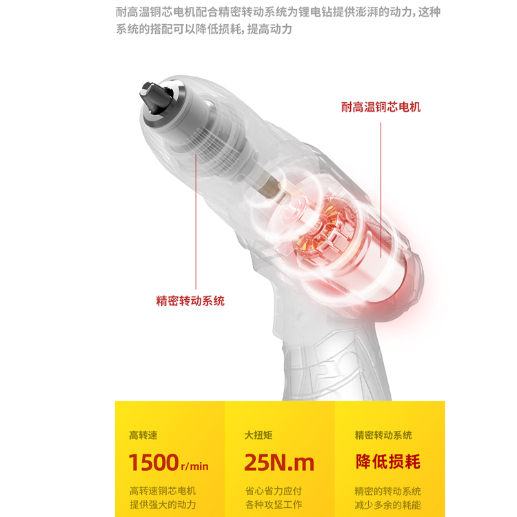 得力(deli) 10.8V無線雙鋰電電鉆強(qiáng)勁電機(jī),效率更勝一籌。