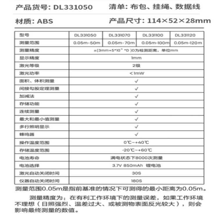 DL331050測量距離一般在200米內,精度在2mm左右