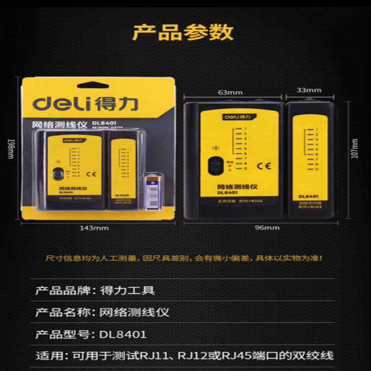 得力(deli) 網(wǎng)線電話線測(cè)試儀網(wǎng)絡(luò)測(cè)線儀 DL8401可加速工程進(jìn)度和工程質(zhì)量