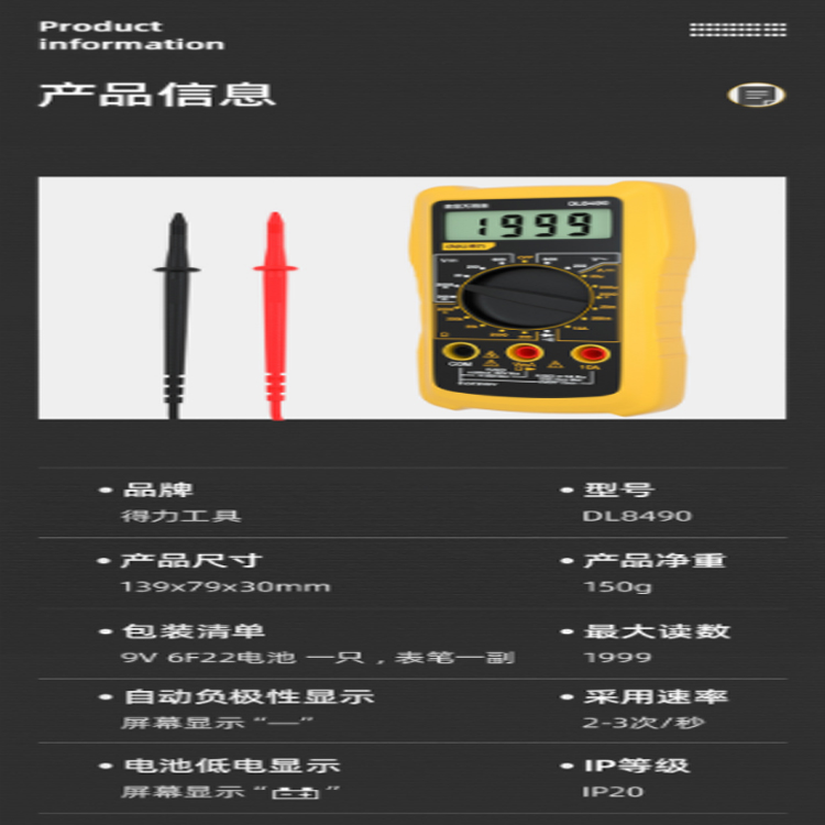 得力(deli) 數顯萬用表多用表電流表3-1/2位600V DL8490