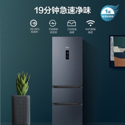 美的(Midea)325升 三門冰箱19分鐘急速凈味除菌一級能效雙變頻智能WiFi操控家用電冰箱