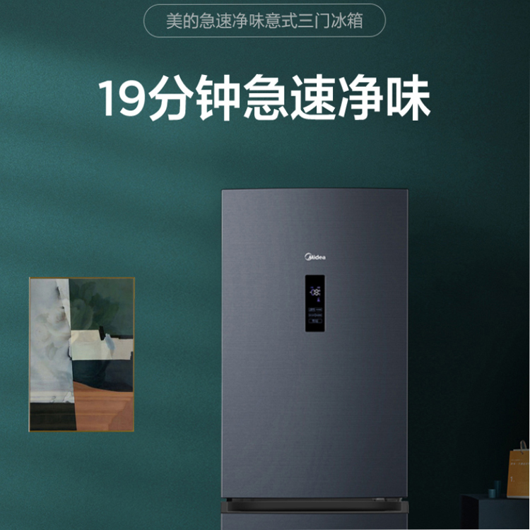 美的雙變頻智能家用電冰箱超磁電離凈味,19分鐘急速凈味。