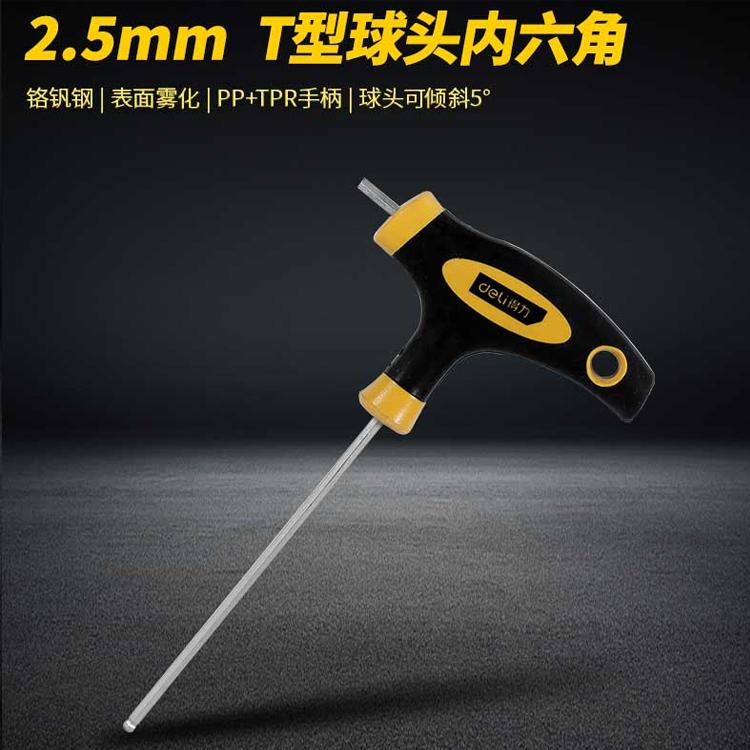 得力t型內六角扳手單個2-5-10mm螺絲刀球頭平頭內六方六棱角扳手