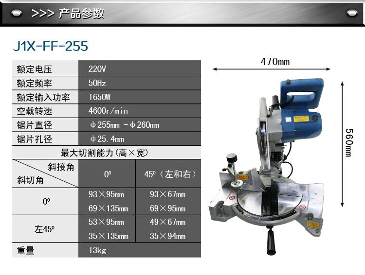 東成J1X-FF-255斜切割機東成工具各項基本參數如圖