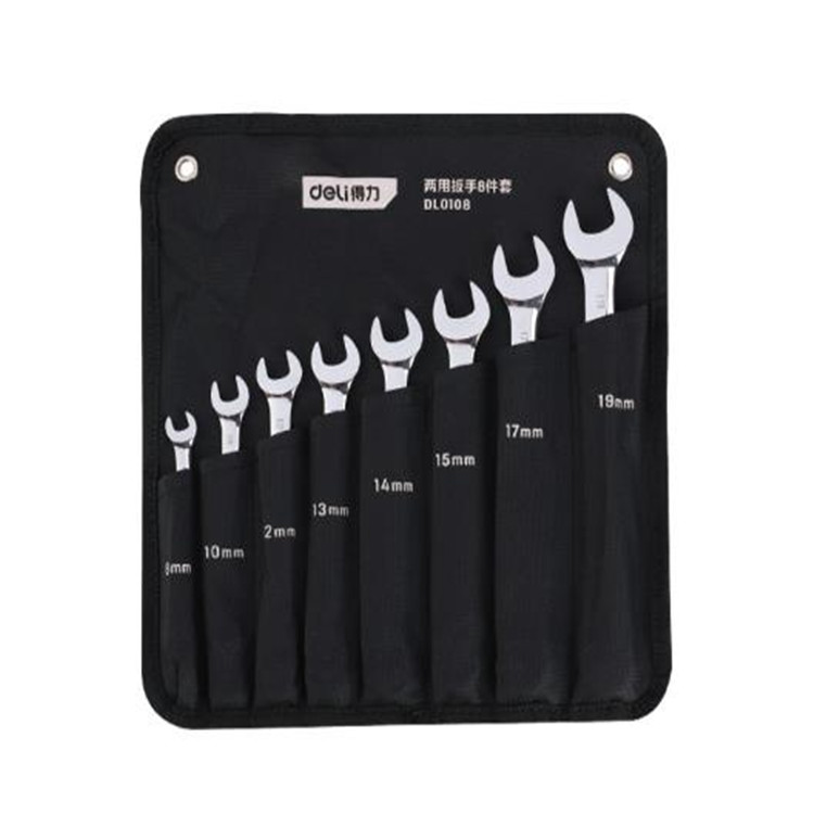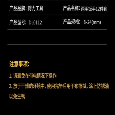 得力12件套鏡面兩用扳手,使用完畢后用干布探試,涂上防銹油