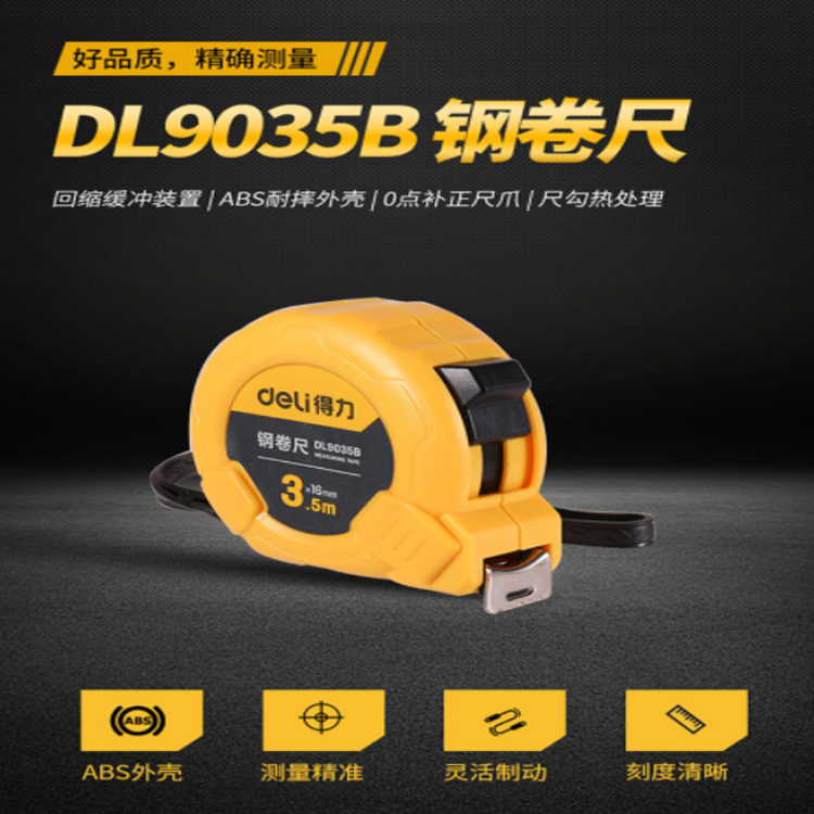 得力(deli) 3.5米鋼卷尺盒尺伸縮尺米尺公制3.5m*16mm DL9035B