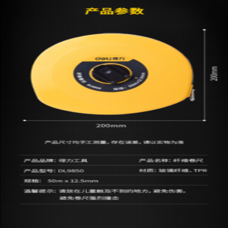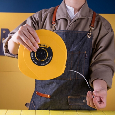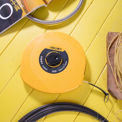 得力(deli) 50米纖維尺纖維盒式卷尺操場盤式皮卷尺軟尺伸縮尺工程測量工具