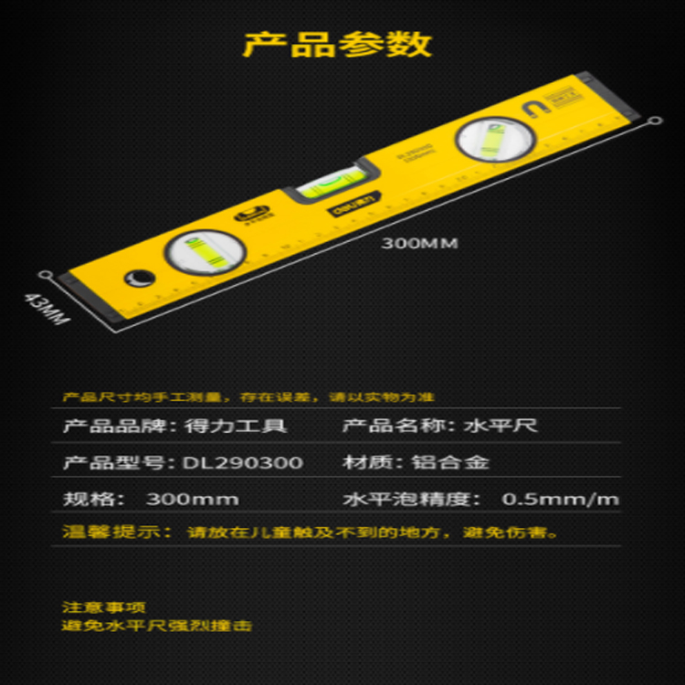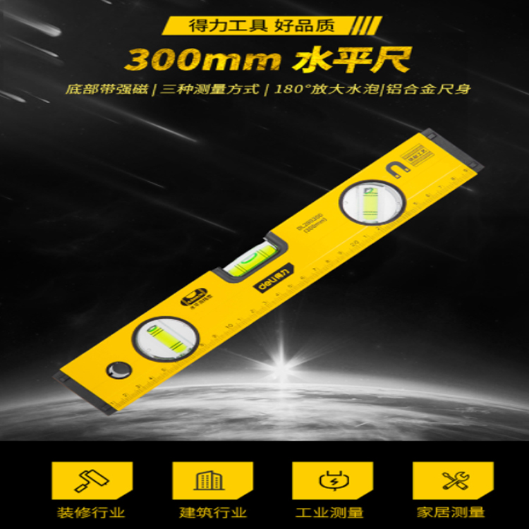 得力(deli) 強磁多角度水平尺鋁合金水平測量尺水平儀300mm DL290300