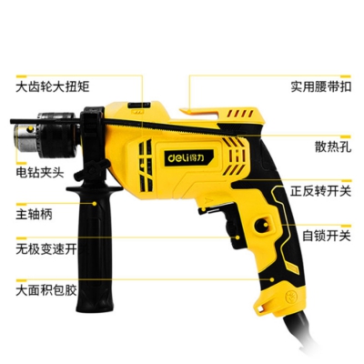 得力(deli) 13毫米沖擊鉆手電鉆家裝維修,電氣工業,應急維修,攜帶方便。