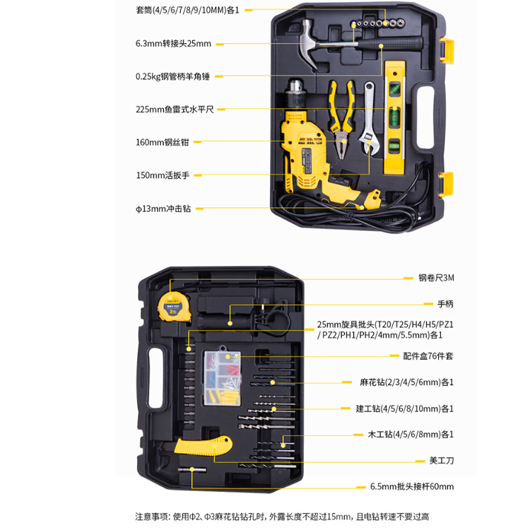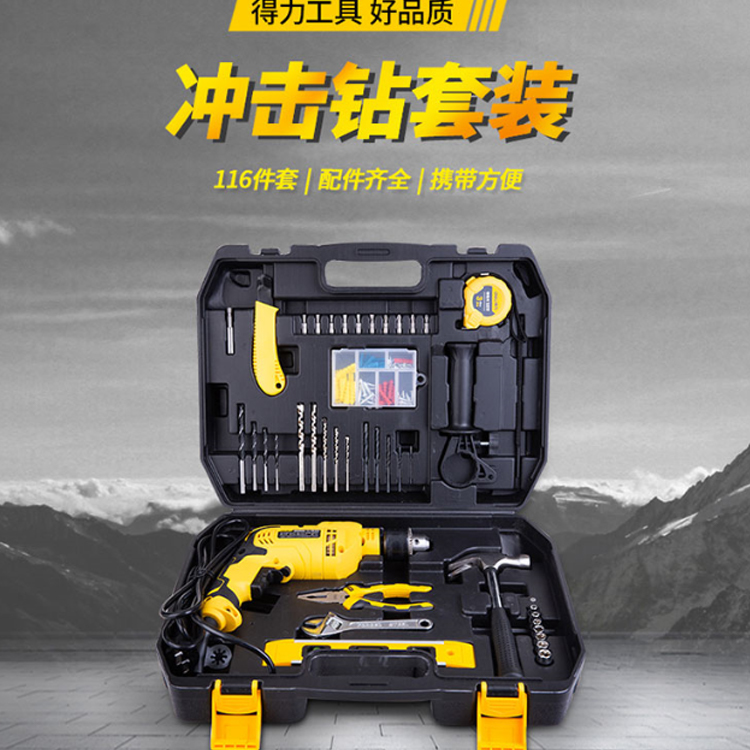得力(deli) 13毫米沖擊鉆手電鉆家用多功能工具箱電動工具套裝 DL6011