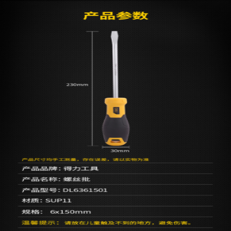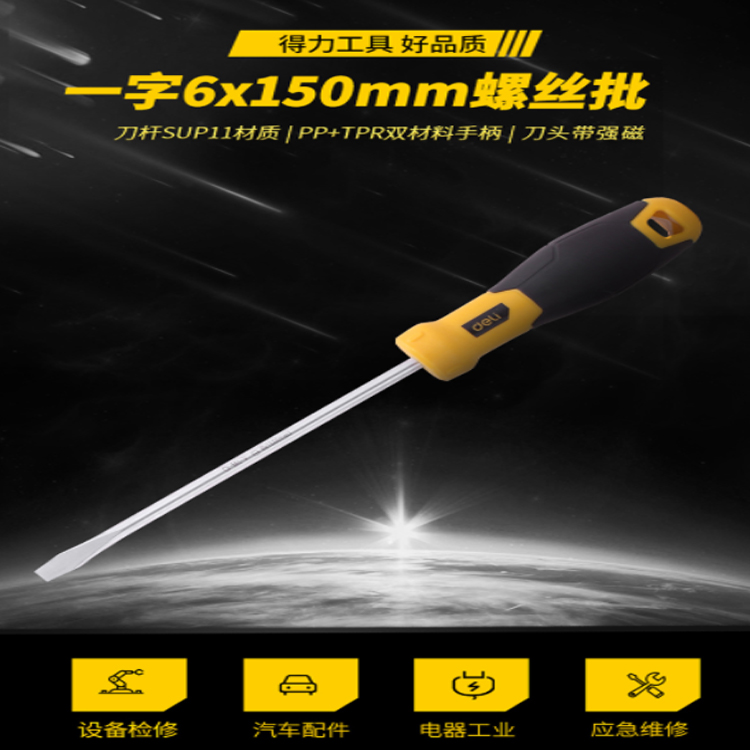 得力(deli) 魚雷式橡膠柄一字螺絲刀批帶磁性家用維修起子6*150mm DL6361501