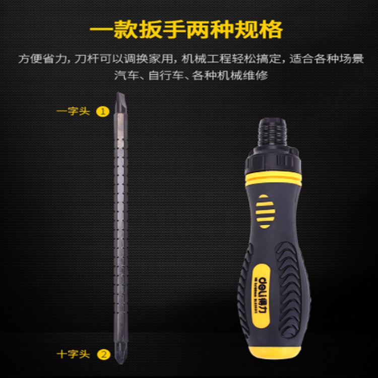 得力(deli) 棘輪可伸縮兩用螺絲刀十字一字兩用起子多功能改錐防滑批頭