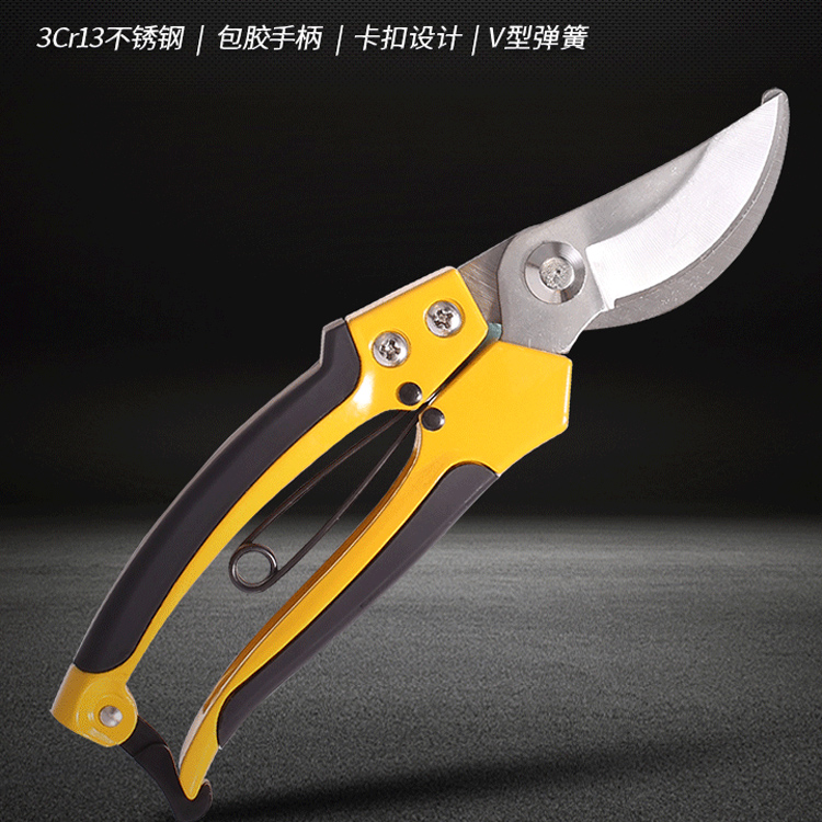 花木剪3Cr13不銹鋼、包膠手柄、卡扣設計
