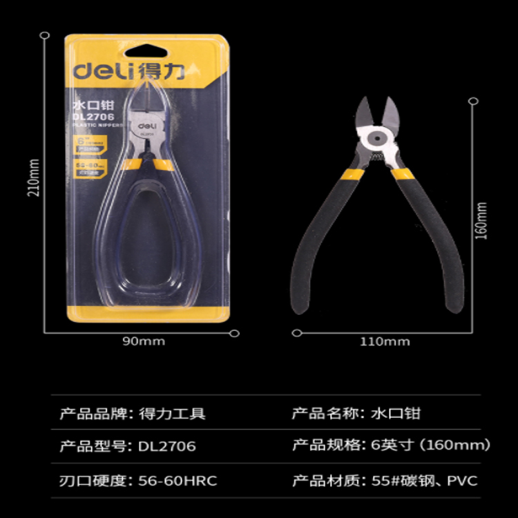 得力(deli) 防滑水口鉗水口剪電子剪塑料鉗斜口鉗6英寸 DL2706采用55#高碳鋼精工
