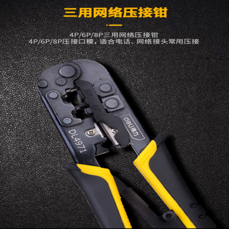 得力(deli) 棘輪網絡鉗4P/6P/8P三用網線鉗帶棘輪 網線鉗子 DL4971