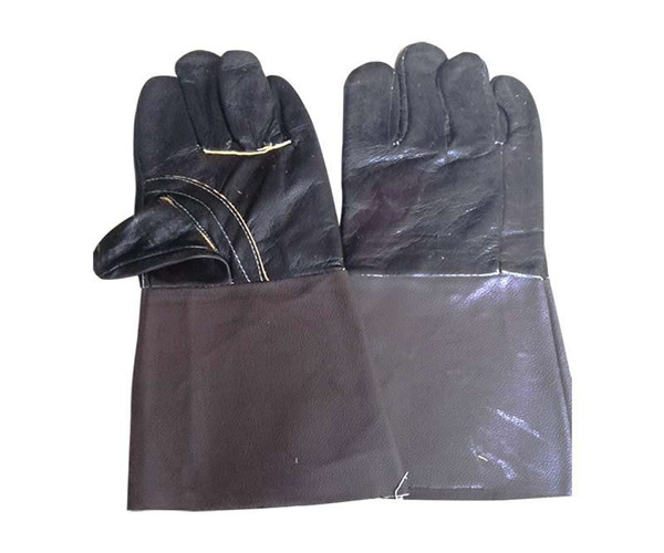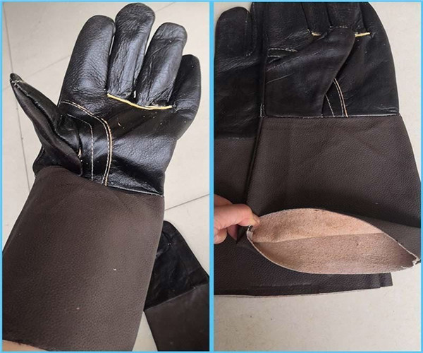 牛盾頭層牛皮全皮長電焊手套深色產品展示