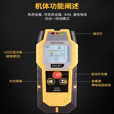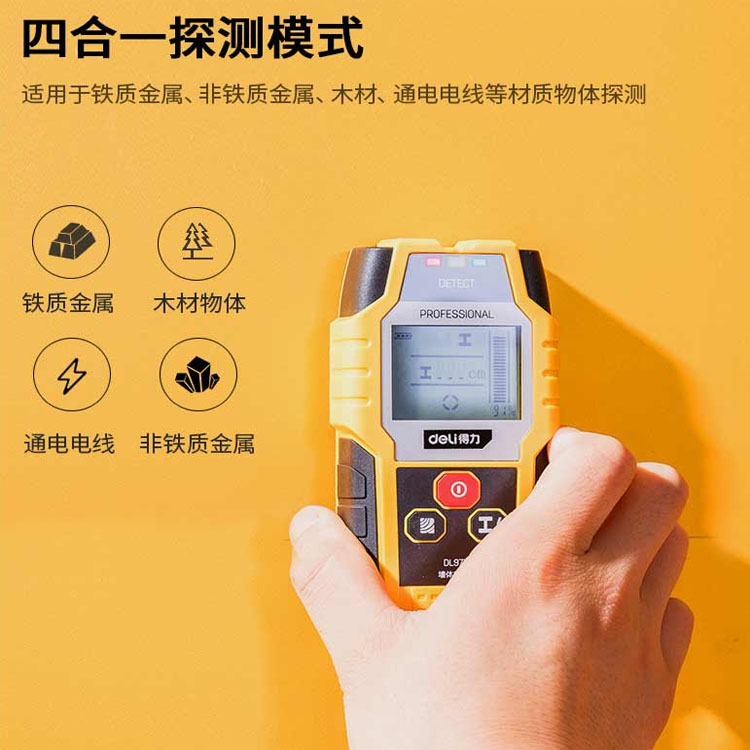 得力多功能墻壁墻體探測儀墻內測鋼筋電線木龍骨金屬檢測器