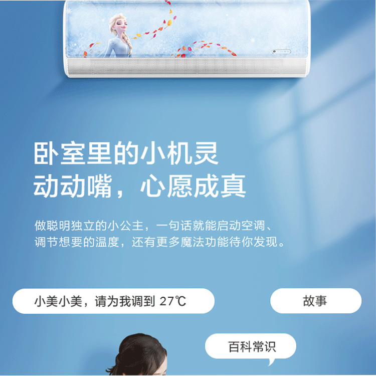 美的艾莎兒童空調自帶聲控,還可以陪伴孩子學習講故事。