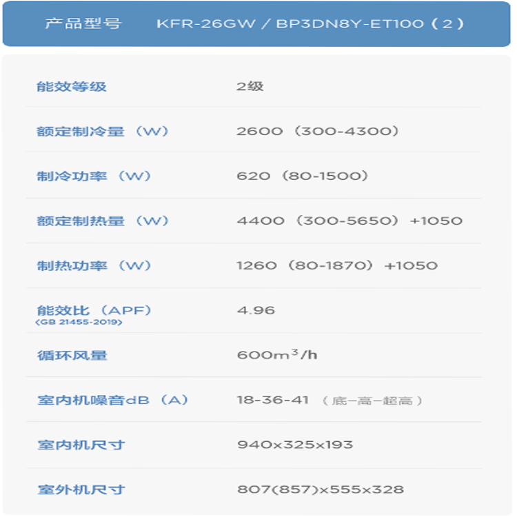 - 型號名稱KFR-26GW/BP3DN8Y-ET100(2)艾莎
