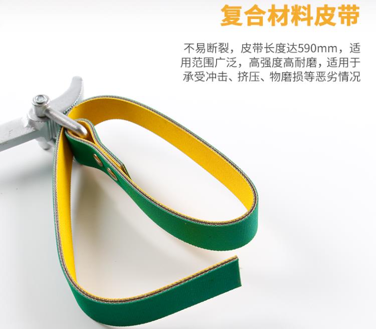 皮帶扳手采用符合材料皮帶,不易斷裂,皮帶長度達590mm