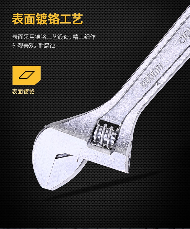 活動扳手表面采用鍍鉻工藝鍛造,精工細(xì)作,外觀美觀,耐腐蝕