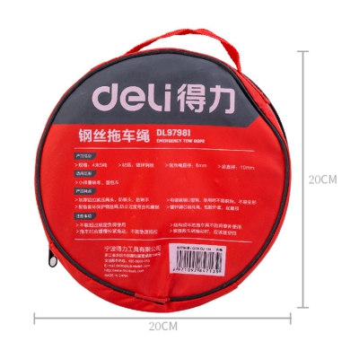 得力鋼絲拖車繩堅固實用 動載拉力:≥5噸 破斷拉力:≥3噸