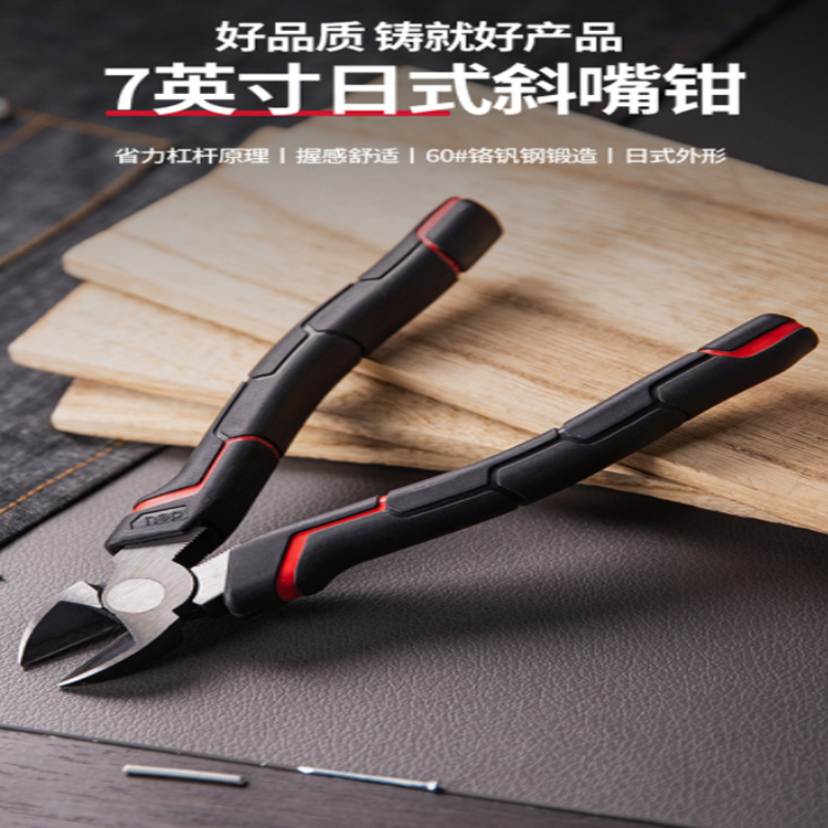 斜嘴鉗桿結構設計,工作高效,省時省力,TPR雙色手柄,握感舒適,耐磨防滑