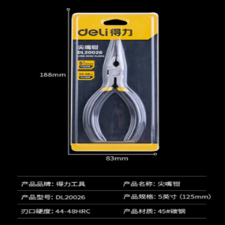 得力(deli) 高碳鋼精工鍛造迷你有牙尖嘴鉗尖口鉗尖咀鉗夾持鉗5英寸 DL20026