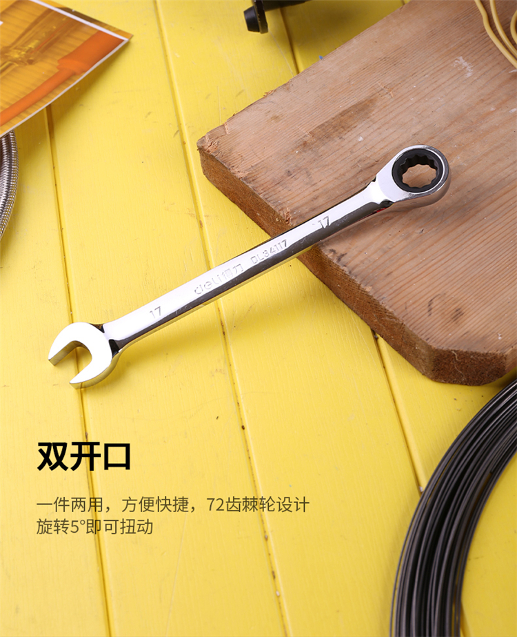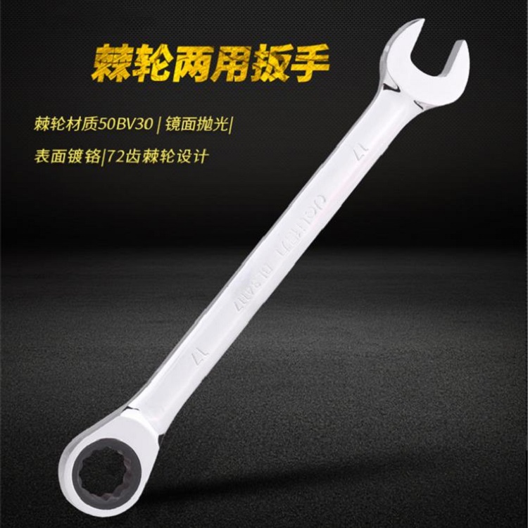 棘輪兩用扳手表面鍍鉻,72齒棘輪設計