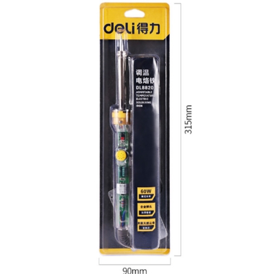 得力可調溫60W電烙鐵雙層天然云母發熱芯,加熱快,使用壽命長。