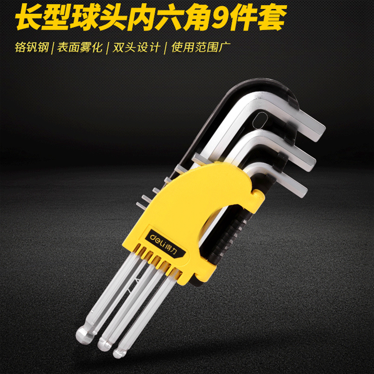 得力內六角扳手組套裝平頭球頭花型公英制吊環內六方加長萬能工具