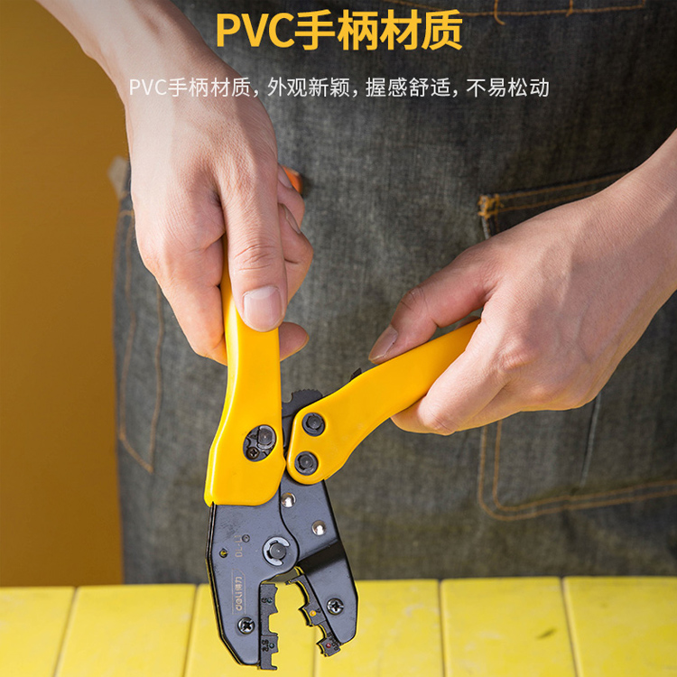 得力冷壓鉗多功能棘輪壓接鉗精密預絕緣裸端子電工夾線壓線鉗工具