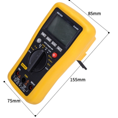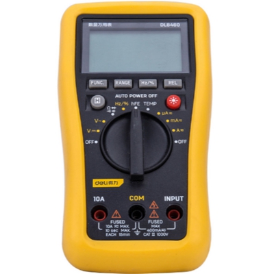 得力數顯萬用表可測電壓、電流、電阻、二極管、三極管、通斷測試、頻率、占空比、電容、溫度等。