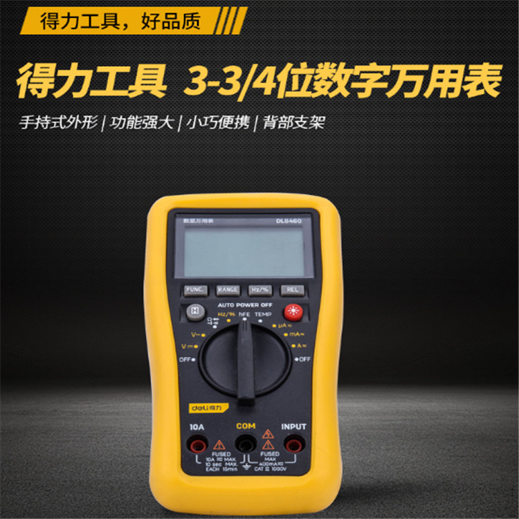得力數顯萬用表產品讀數3999;顯示位數3 3/4位。