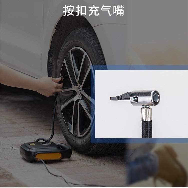 充氣泵按扣充氣嘴,體積小巧,可便攜放置,預設胎壓,自動沖停。