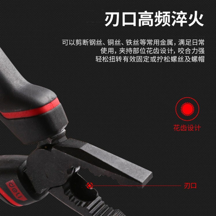 省力型鋼絲鉗刃口高頻淬火,硬度達(dá)到58-62HRC,剪切力強(qiáng)