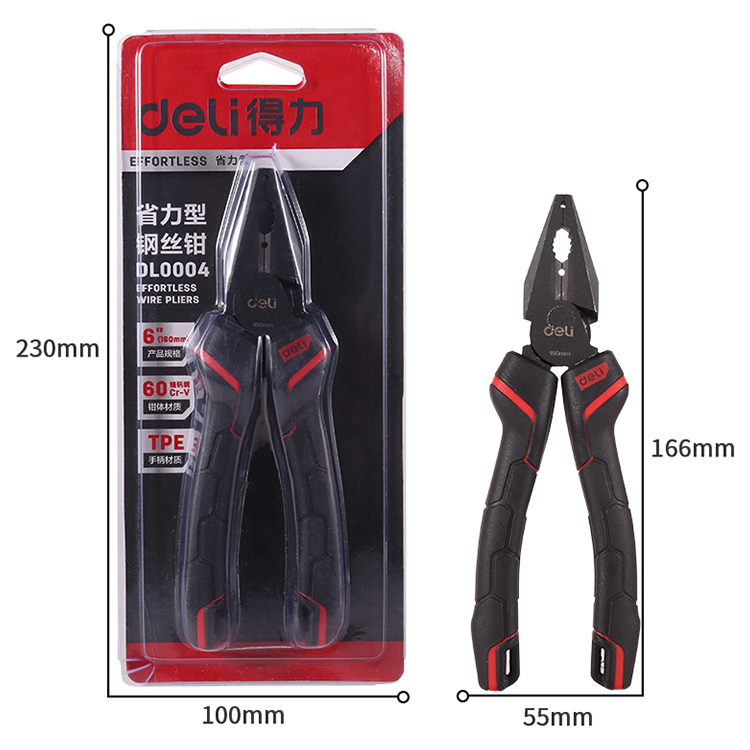 省力型鋼絲鉗DL0004-6寸,產(chǎn)品尺寸166*55mm
