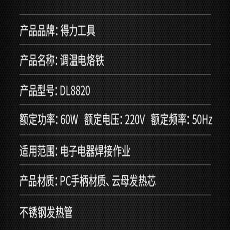得力(deli) 恒溫電烙鐵可調(diào)溫電烙鐵溫控焊接工具60W DL8820發(fā)熱芯采用雙層云