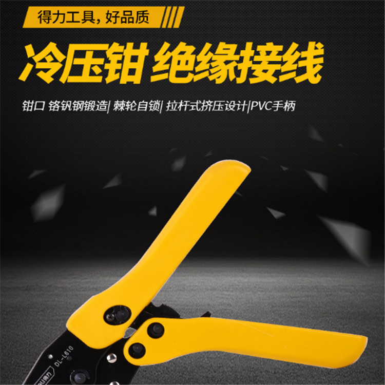 得力冷壓鉗快速棘輪壓線鉗電工絕緣端子接線鉗工具壓接線鉗