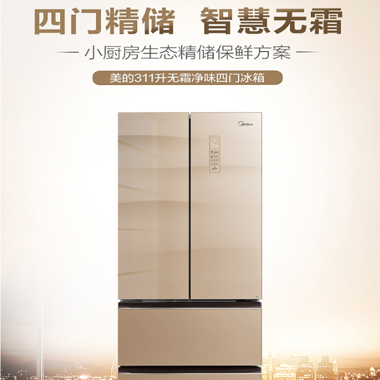 美的(Midea)311升 多門智能家用冰箱抗菌保鮮冷藏冷凍玻璃面板變頻無霜分區
