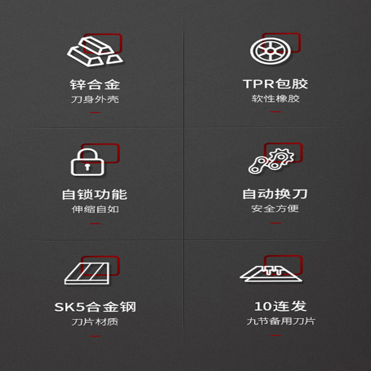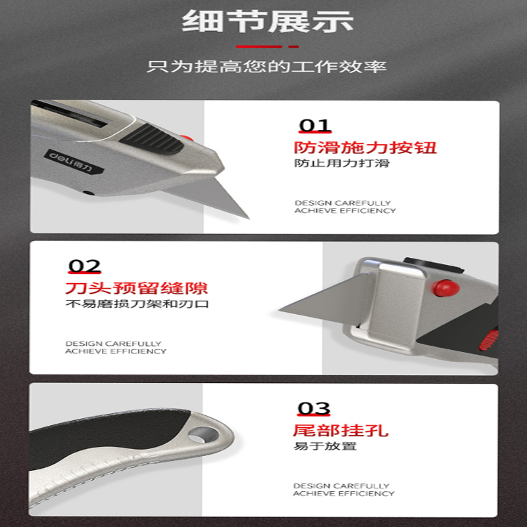 得力(deli) 10連發重型自鎖鋅合金美工刀適用范圍:家用、